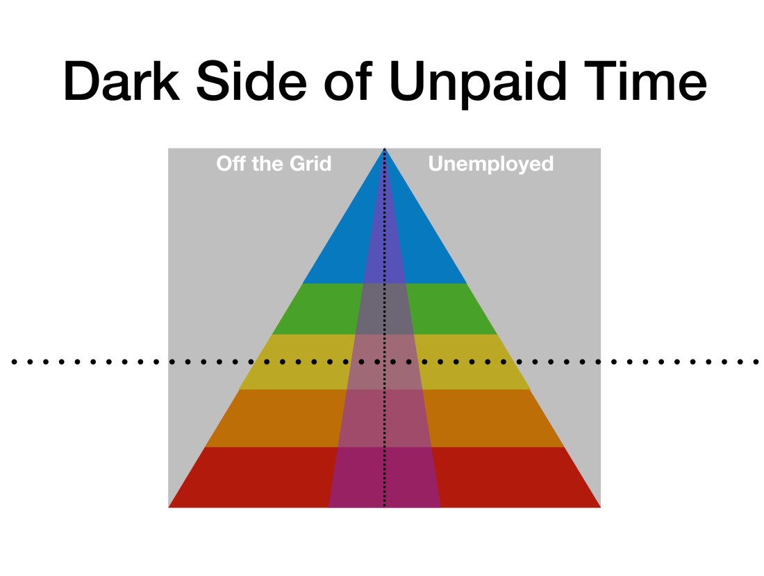 In my previous post, Unpaid Time Distribution, I noted that unpaid time can be voluntary or involuntary. Examples of the former include a leave of absence from paid work, participation as a volunteer or intern within the public or private sector, or a lifestyle decision to live “off the grid.” As the wording suggests, involuntary unpaid time is not necessarily an outcome of choice, but the result of unemployment and unavailability of paid time due to termination, reduction in force, early retirement, sour reputation, etc.